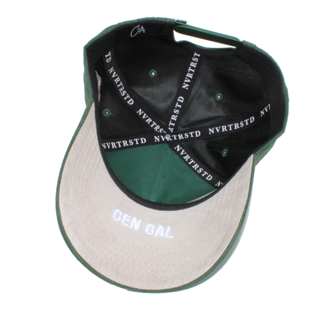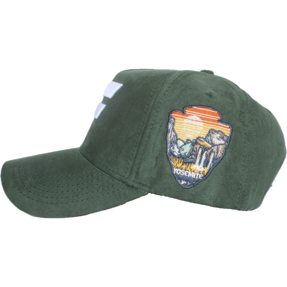 This "Yosemite" hat features a Forest Green color way. The 1st hat of the "Park Pack". It features an all suede fabric with a crisp white puff embroidered "F" on the front. On the upper part of the brim we embroidered the California State outline. Cen Cal embroidered in white lettering on the under brim. The side patch honors Yosemite National Park, while the back showcases a "559" hem tag. Each hat comes with a complimentary hat pin. Only 30 pieces are available.Get yours while supplies last. No restocks.